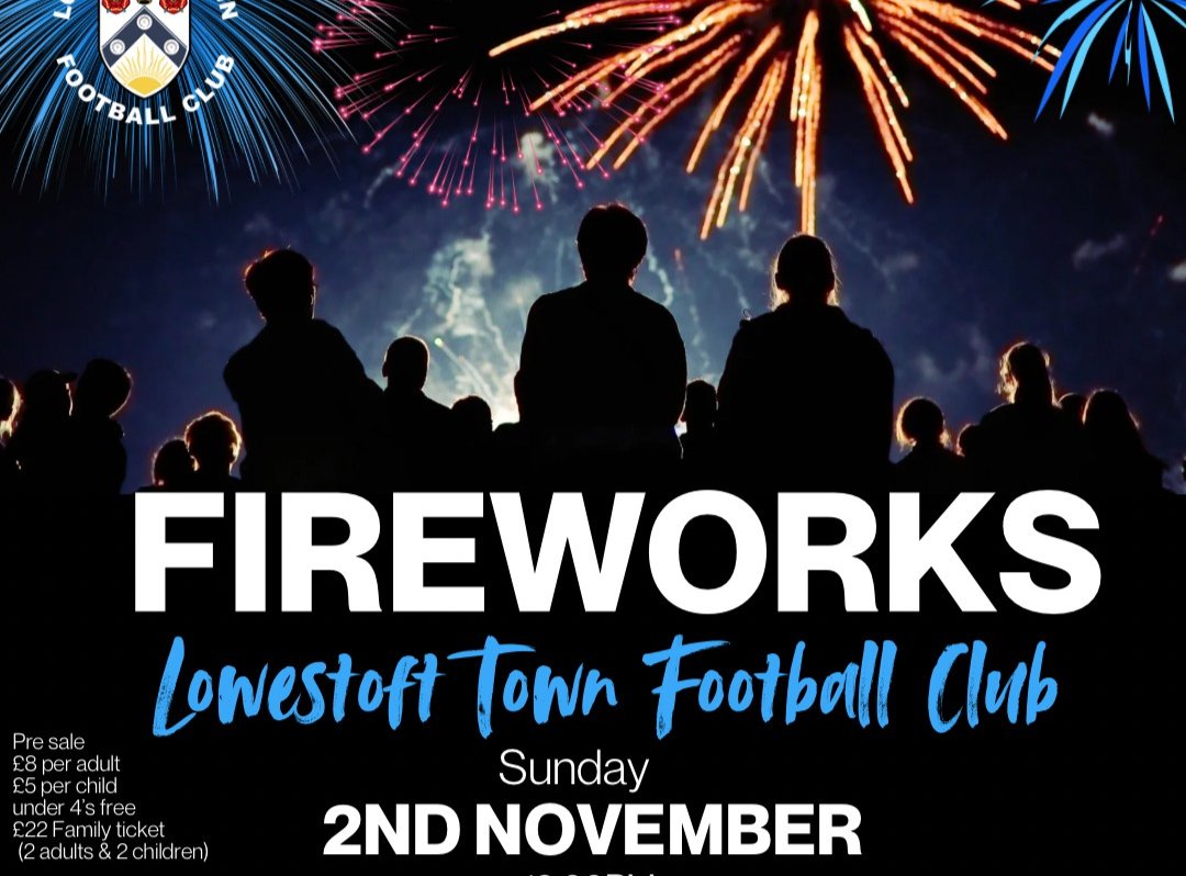 Join us for a brilliant evening of fireworks at Lowestoft Town Football Club β a great family night out!